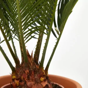 - Cyca revoluta: es perteneciente a la familia Cycadaceae y se caracteriza por tener hojas largas con un tono verde intenso. La misma es conocida también como Palma de Sagú.