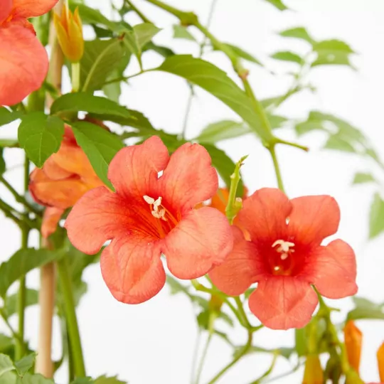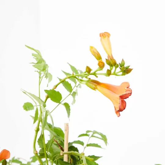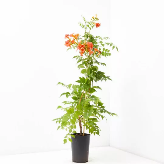 Conocida también como Tecomaria o Bignonia Roja, cuenta con una flores preciosas en forma de campana y de color naranja con matices rojos que te permitirán ornamentar y llenar de color a tu jardín.