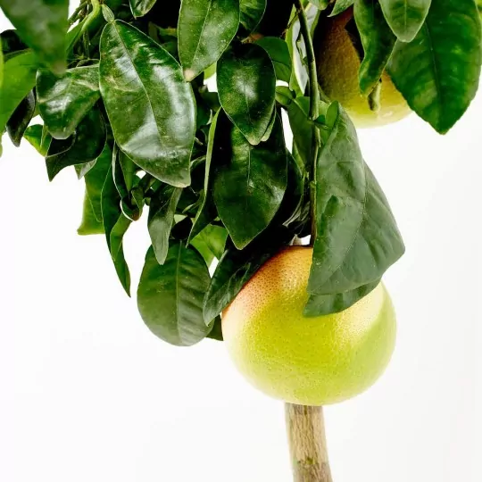 El árbol del Pomelo es otro de los pertenecientes a la categoría de frutales que más destaca. Su origen es asiático y es reconocida como la fruta cítrica más grande. Por fuera es muy similar a una naranja, pero por dentro sus gajos son de un tono rojizo.